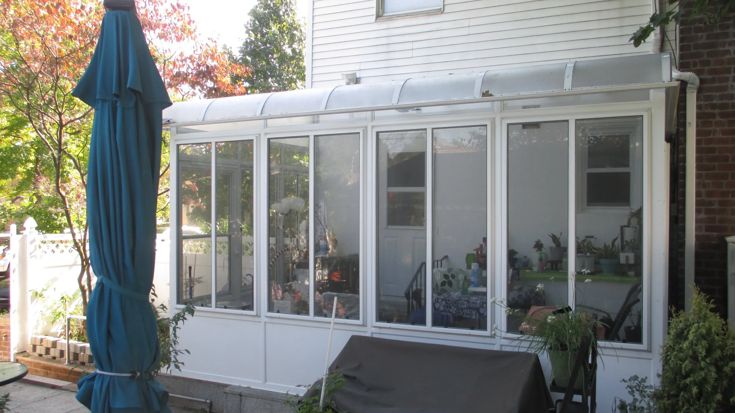 Creates an additional outdoor area to spend time with family and friends for, Increases your home’s resale value by adding to the livable space usable indoor living space with an outdoor feel, inviting in the natural light. Rainbow Awning uses solid aluminum framing along with single paned glass to construct a durable thee season Sunroom